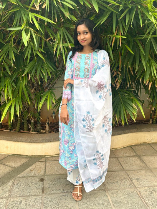 Women's Salwar Suit Set – Top + Bottom + Shawl | Premium Cotton Blend | Sizes S to XXL | ₹888 Only